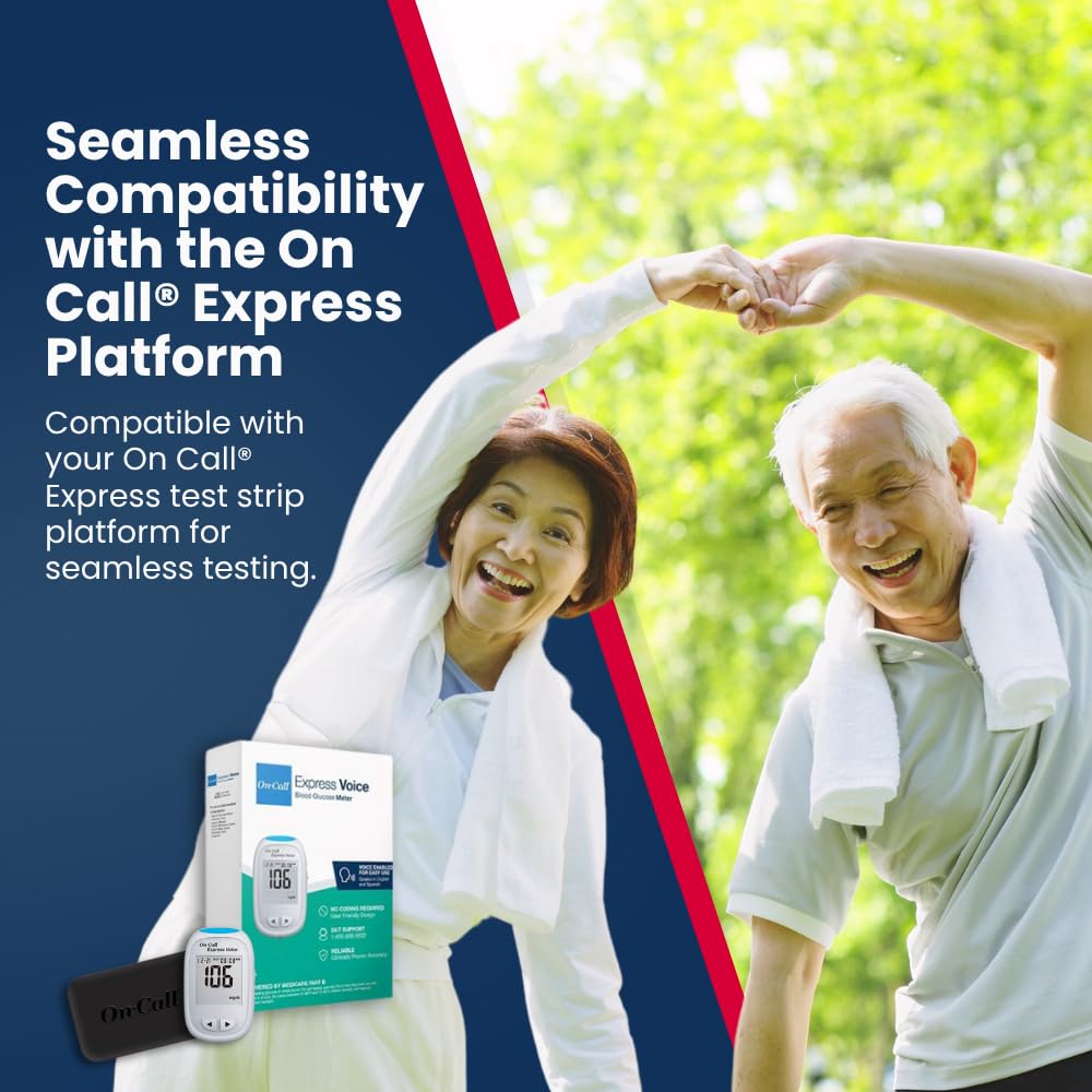 FAST, EASY, ACCURATE: On Call Express blood glucose meter provides results in about 4 seconds from a small 0.4 µL blood sample. Audible English/Spanish voice prompts guide setup and testing. The tactile design and recessed strip slot make strip insertion simple, and audible fill detection with redosing support helps minimize wasted strips.