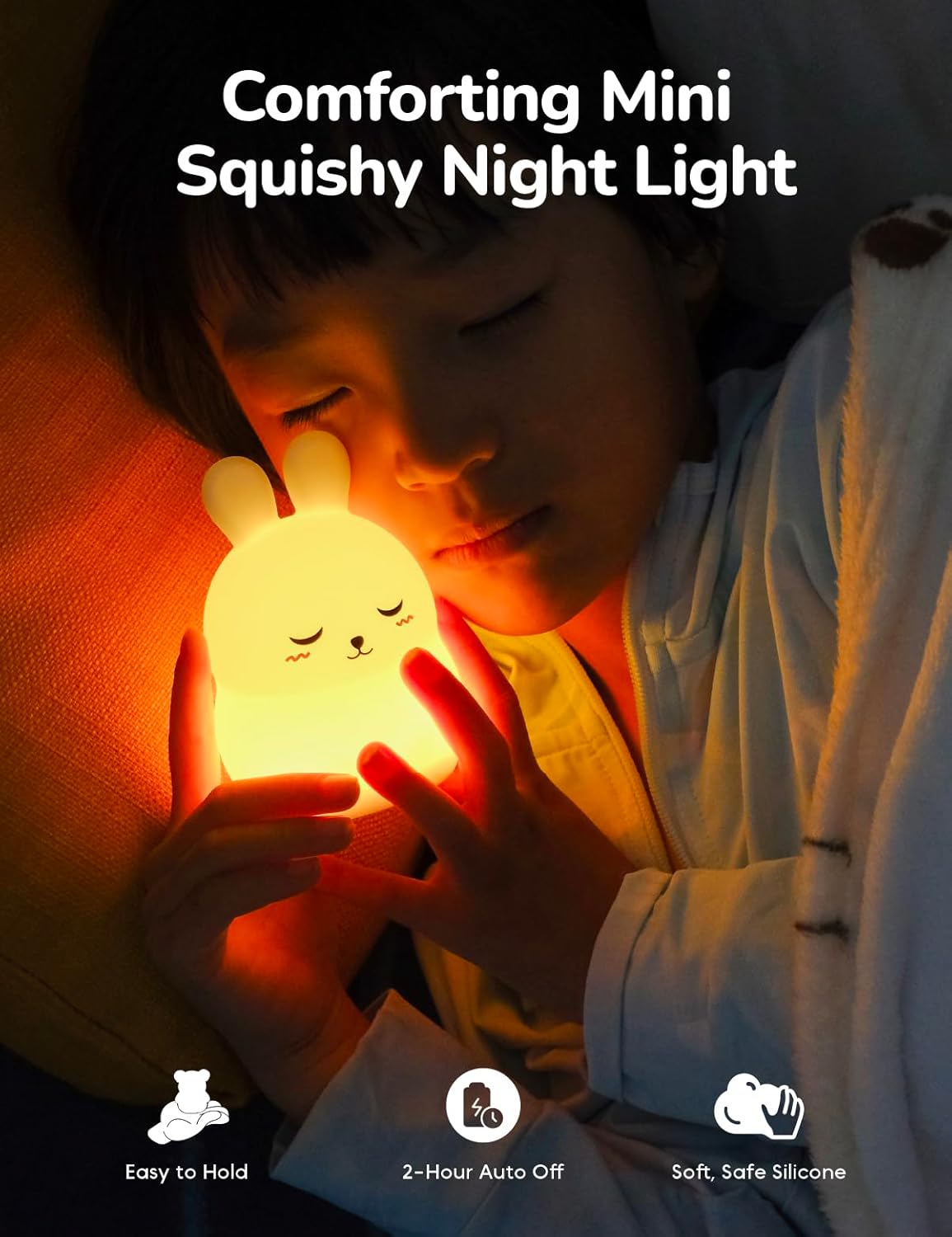 COMFORTING SQUISHY NIGHT LIGHT: Doubles as a soft, safe silicone night light kids love to hold. With a warm glow, easy-to-grip design, and 2-hour auto-off function, it’s the perfect bedtime companion for a soothing night’s sleep.