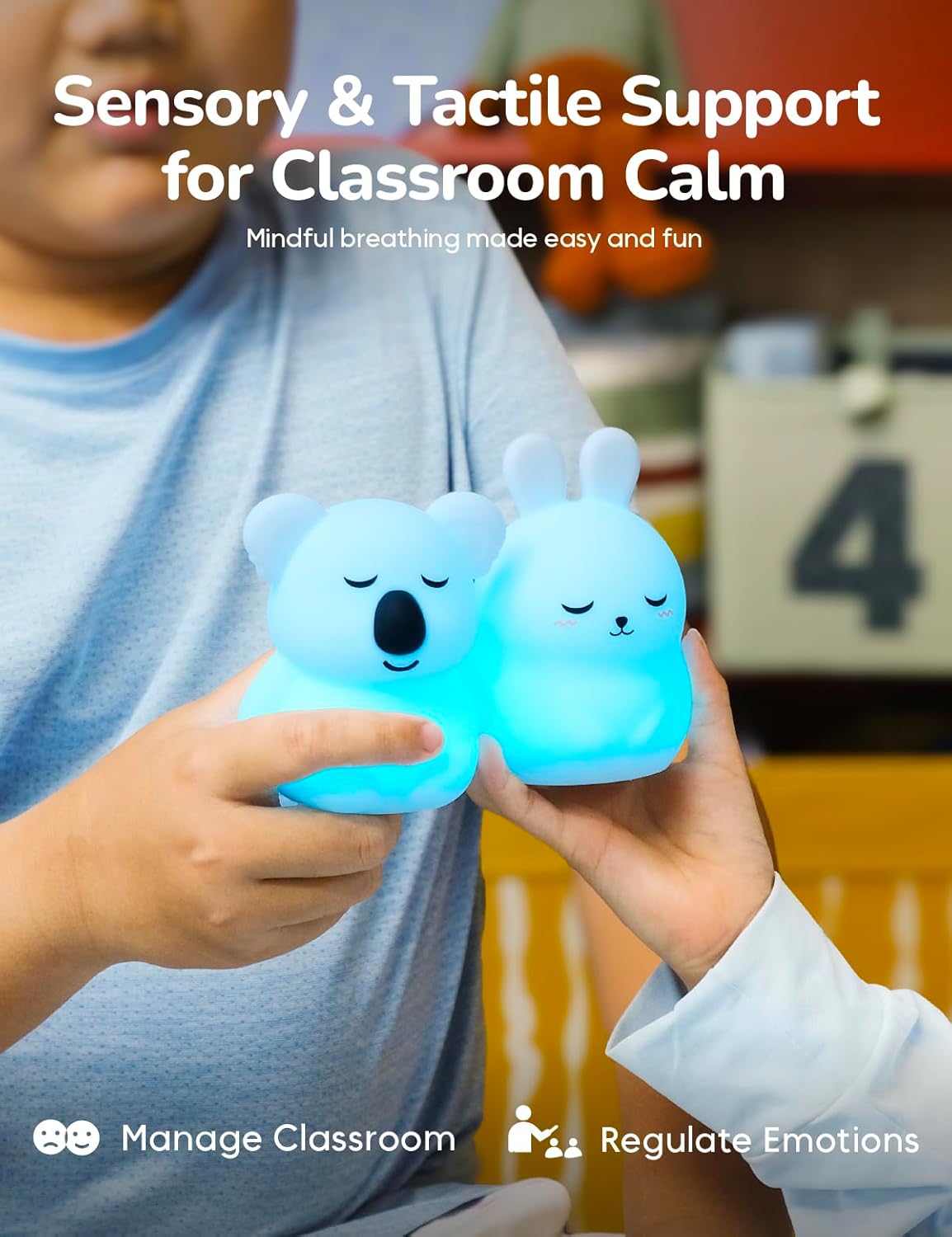 I absolutely love this little breathing pal! I originally got it because I thought it would be a cute and calming addition for bedtime, but it’s turned out to be so much more than that. My 8-year-old has started grabbing this little “Kyle” anytime she feels herself getting anxious, upset, or on the verge of a tantrum. It’s been amazing to watch her take control of her emotions in such a positive, hands-on way.It’s super easy to use — there’s just one button that you can tap up to five times: the first three control the different breathing modes, the fourth turns on the nightlight, and the fifth turns it off. She likes choosing which breathing exercise she wants to do, and after a short cycle, she says she feels calmer and more in control.The light patterns are intuitive and soothing, gently guiding the breathing rhythm, and the soft, squishy design makes it extra comforting to hold or cuddle. It also works beautifully as a nightlight — just enough glow to feel cozy without being too bright.This is such a fantastic idea and a genuinely helpful little tool for emotional regulation and relaxation. It’s fun, effective, and beautifully made. I highly recommend it to any parent looking for a simple, engaging way to help their child (or even themselves!) find calm when emotions start to run high.