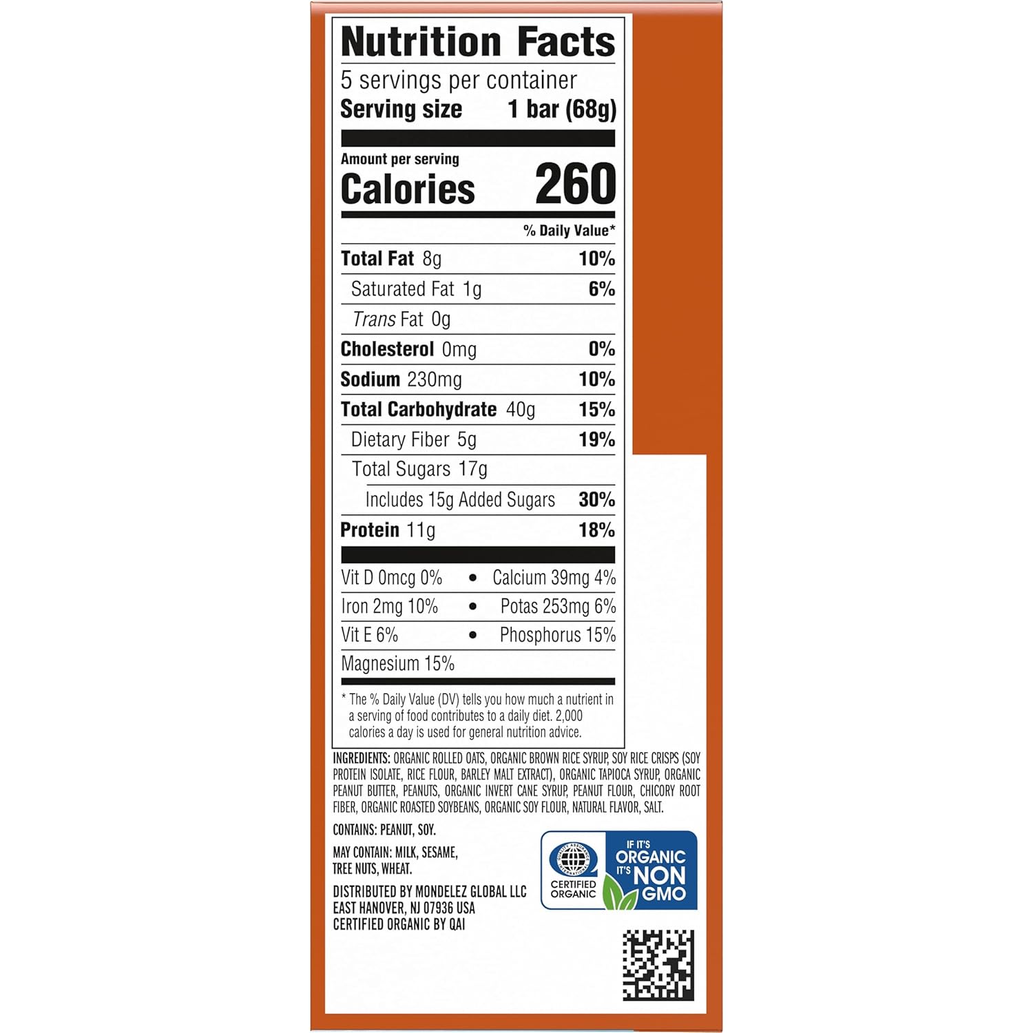 PEANUT BUTTER PERFECTION: Includes one 5-pack box of Crunchy Peanut Butter energy bars made with organic peanut butter and crunchy peanuts for a taste you’ll go nutty for (packaging may vary)