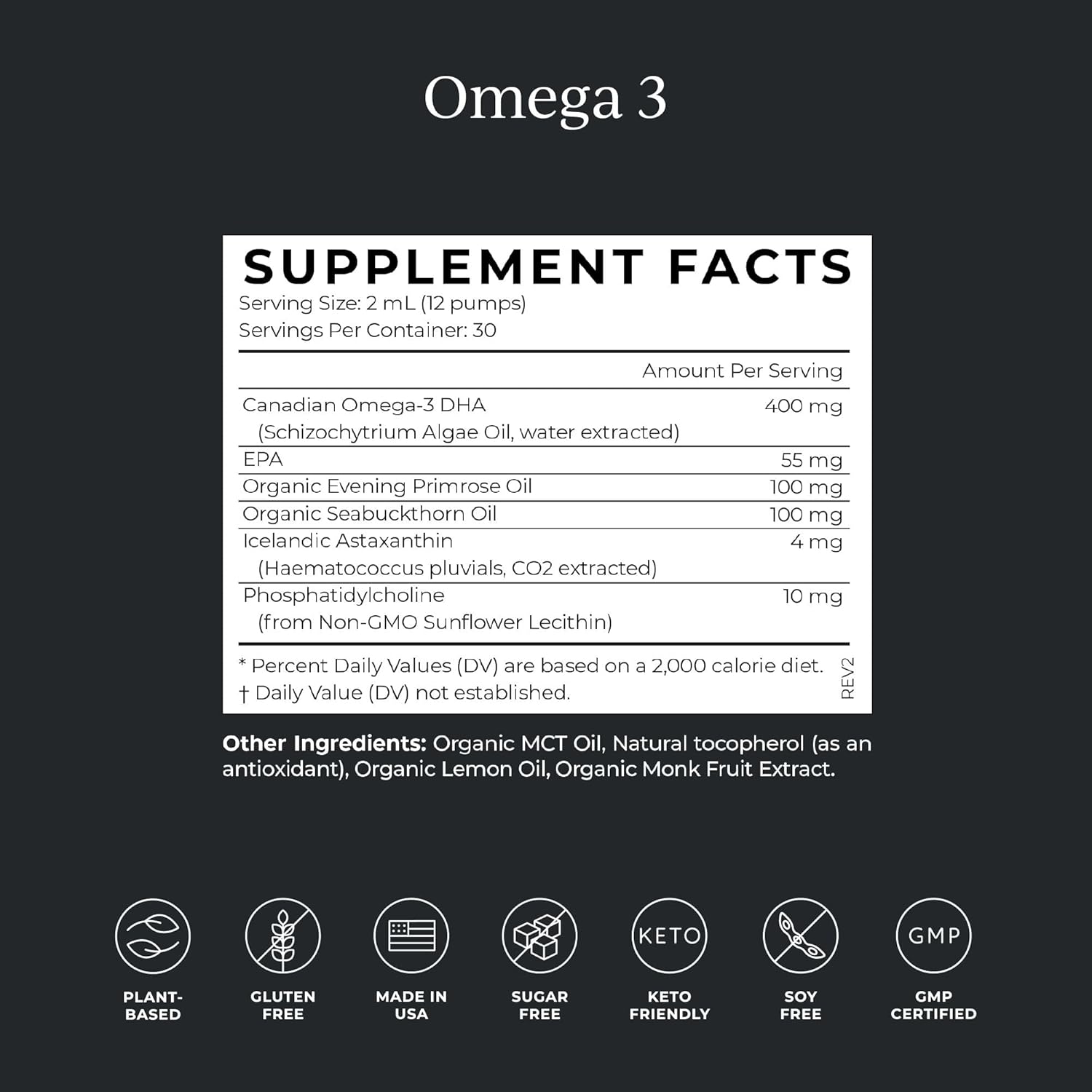 OMEGA 3 LIQUID SUPPLEMENT: Modern biology has identified that DHA is a critical nutrient for our brain, eyes and central nervous system, and our formula provides you with the highest quality vegan Omega 3 DHA/EPA supplement available.