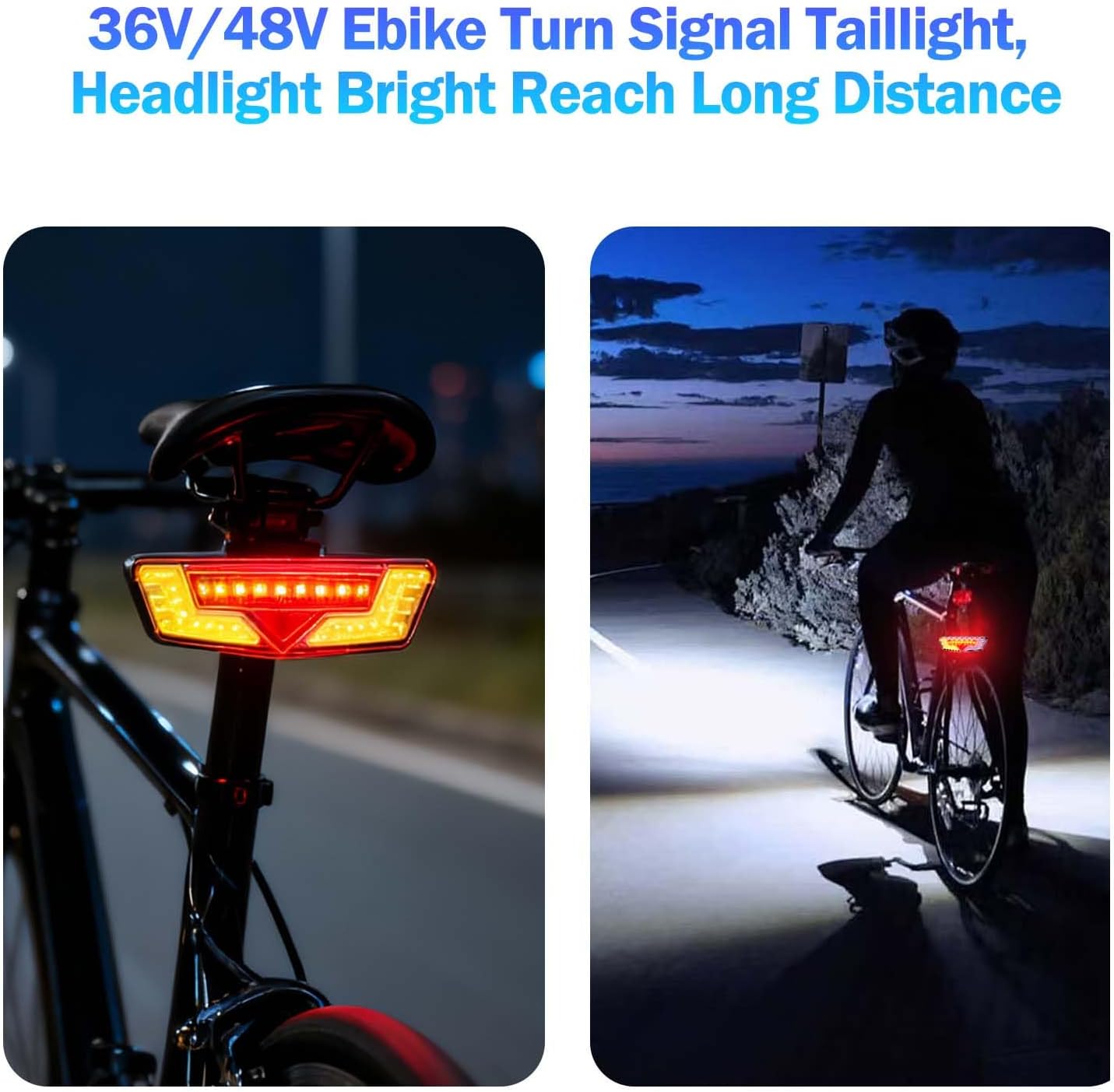 Ebike Light Kit with Turn Signals – 24V 36V 48V Universal Electric Bicycle Headlight & Brake Taillight, 400 Lumens Super Bright, Handlebar Switch Control, Waterproof for E-Bike Scooter