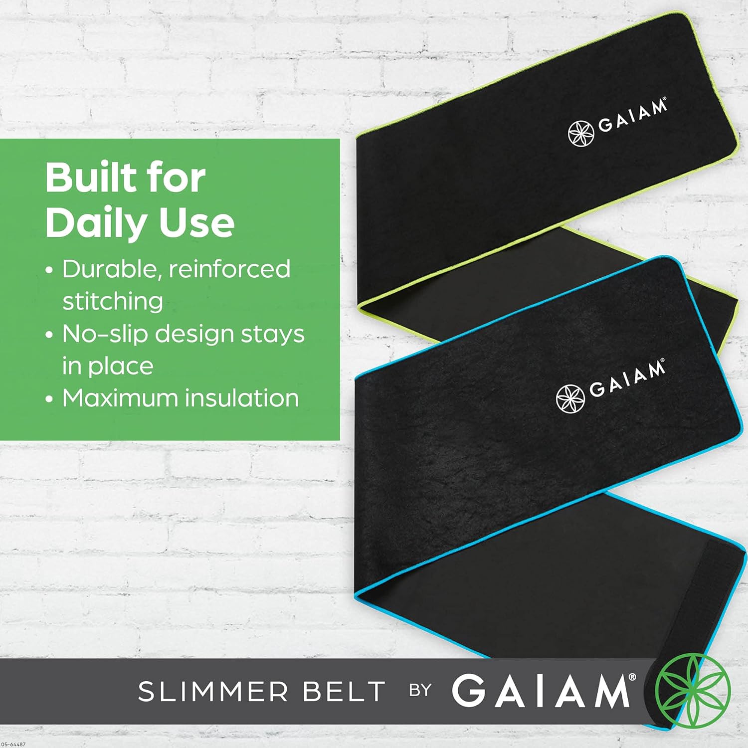 SLIMMER BELT: The Gaiam Slimmer Belt is ideal for waists up to 45″ and is adjustable with durable reinforced construction. Waist trainers are designed to support and activate your core while absorbing sweat but still providing full range of motion.