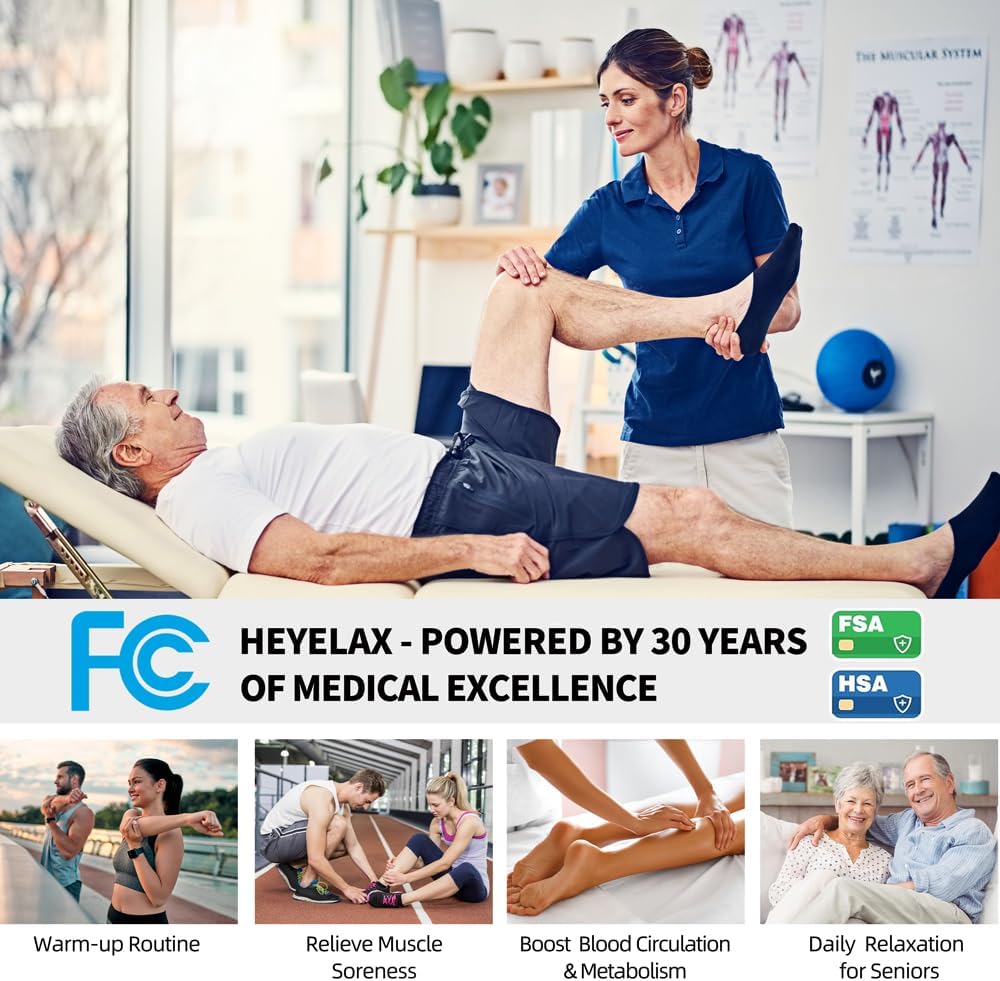 [Medical-Grade Leg Compression Massager] Heyelax, backed by a prestigious listed hospital group, offers a medical-grade air compression leg massager for improved blood circulation and faster recovery. The air compression boots are designed to relieve leg pain and muscle cramps, providing therapeutic relief for restless legs, swelling, and poor circulation.