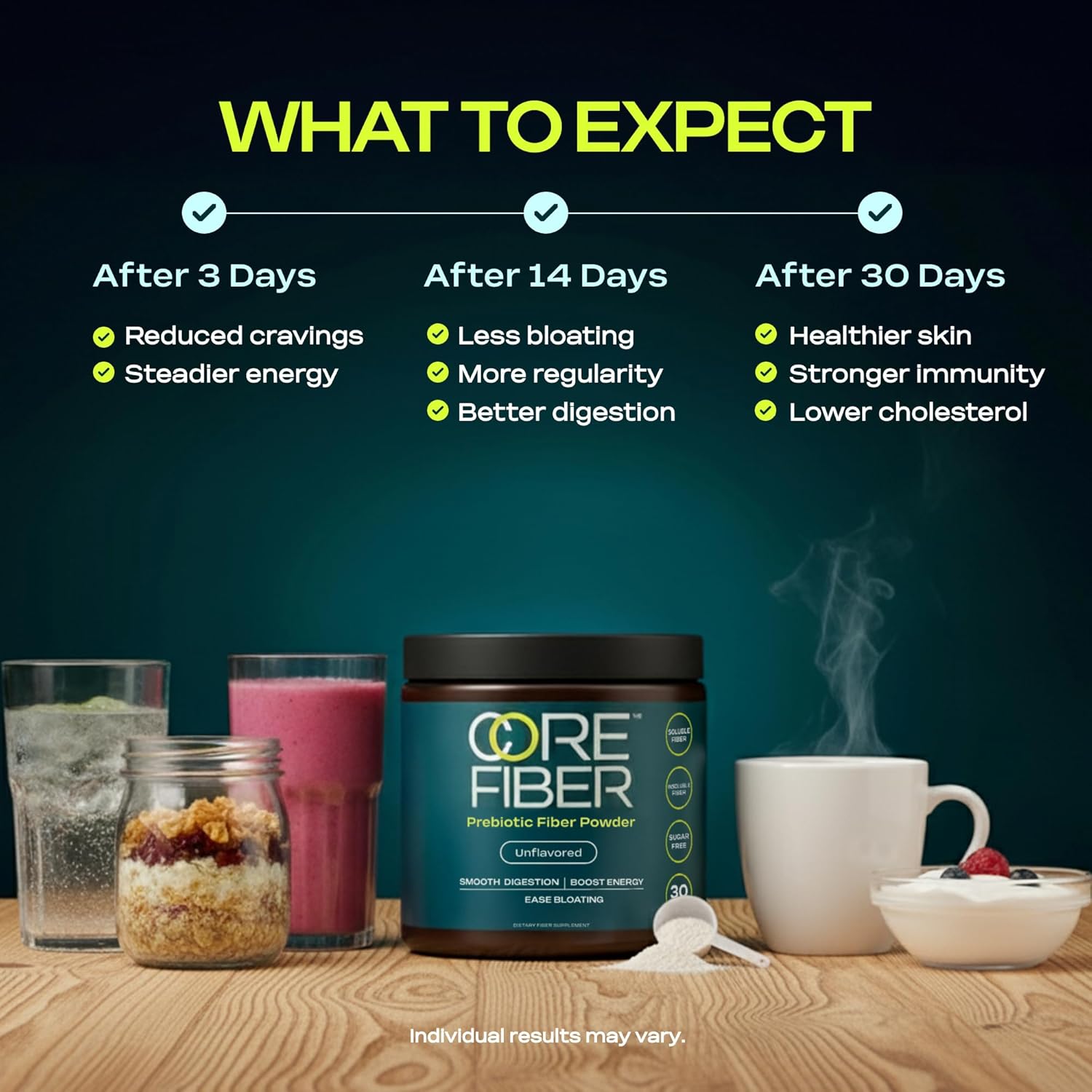 This product is genuinely excellent. I’ve been using Core Fiber for about two or three months, and it’s really led to a significant improvement in my overall gastrointestinal health. What I love most about Core Fiber is how easily it dissolves into smoothies. I don’t even notice I’ve added it, and yet the outcomes are really clear. It makes me feel more full, and I’ve honestly noticed in the past few months I’ve lost almost 10 pounds. I really think it’s because I just feel fuller and less likely to overeat, and I owe that to Core Fiber. So you’ve got me. I’m a customer for life.