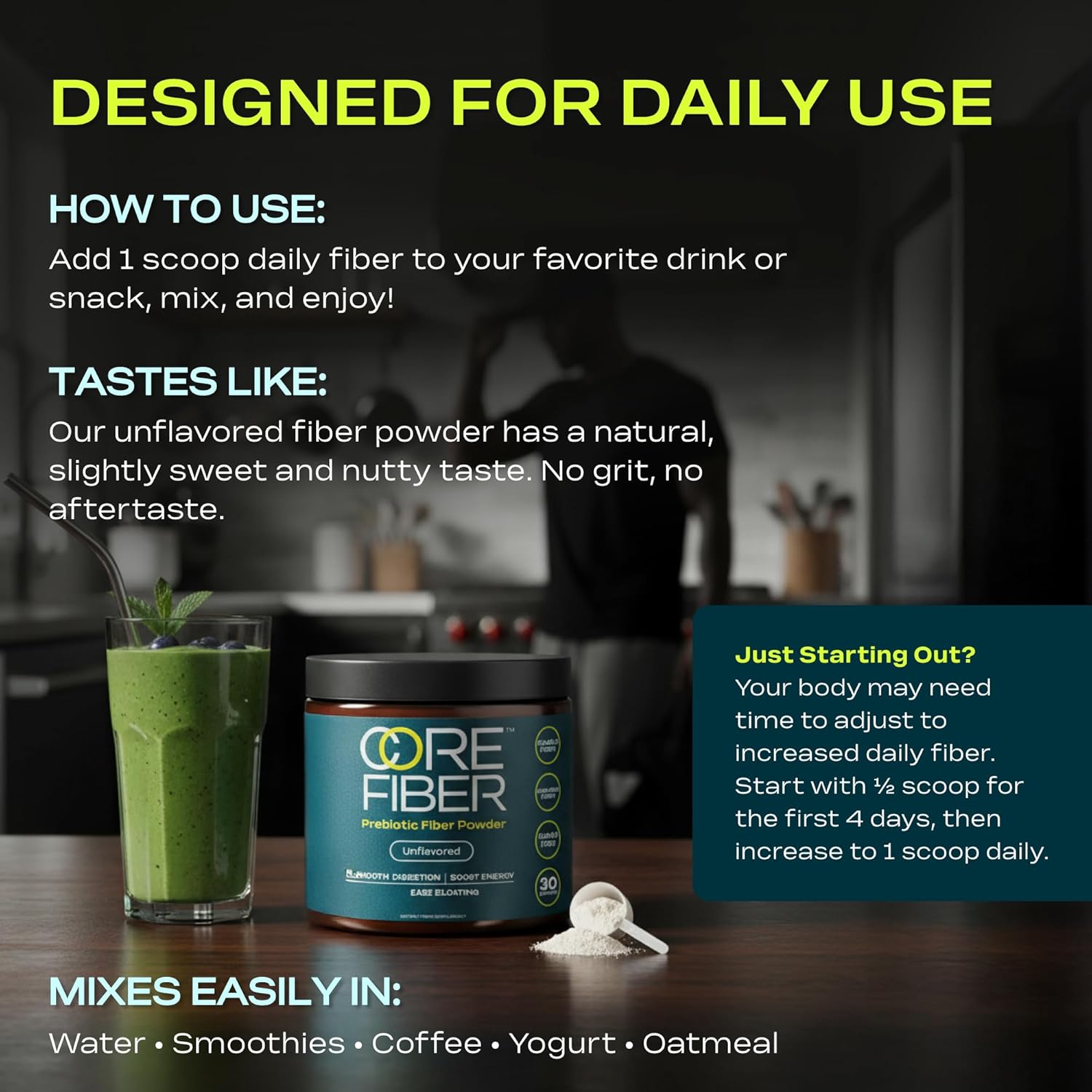 After trying several fiber supplements, this one stands out as the best. The ingredients are clean, natural, and free of fillers or strange additives — just five powerful sources of fiber that truly support gut health.It mixes effortlessly into smoothies, water, juice, and even soups and yogurt without any gritty texture or weird aftertaste. Since adding it to my routine, I’ve noticed less bloating, better regularity, improved digestion, and a real boost in my overall balance and energy.It’s gentle on the stomach, flavorless, and easy to incorporate into daily meals — exactly what I was looking for. Core Fiber 5 lives up to the hype and has become a staple in my daily routine. I highly recommend it to anyone looking for a high-quality, effective prebiotic fiber. I’ll definitely be buying it again!