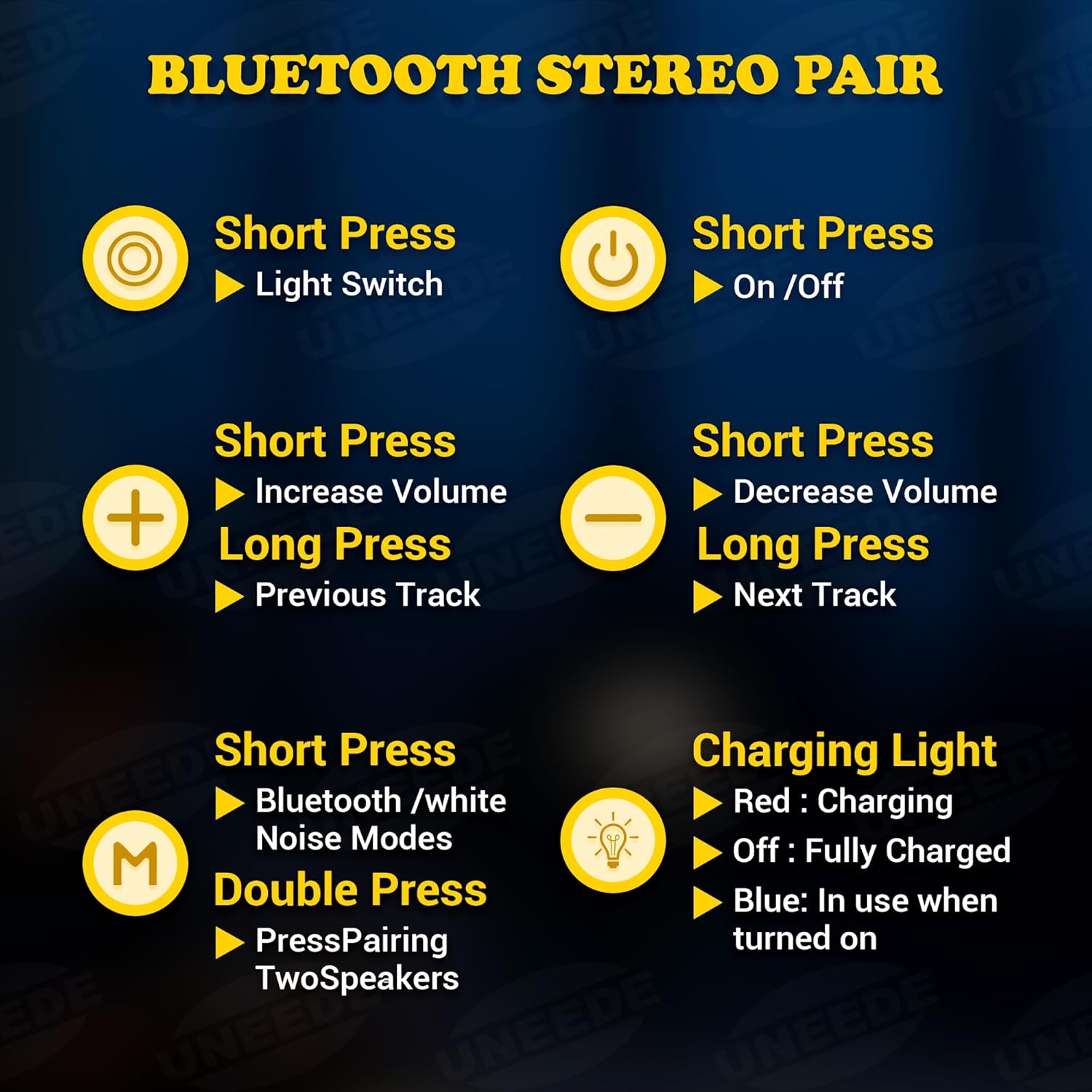 【True Wireless Stereo Sound via Bluetooth】Easily pair two UNEEDE speakers via Bluetooth to create a genuine stereo sound field. Ideal for enjoying music, podcasts, or bedtime stories, it instantly fills your space—whether during a camping trip or a quiet evening at home—with full, enveloping stereo sound.