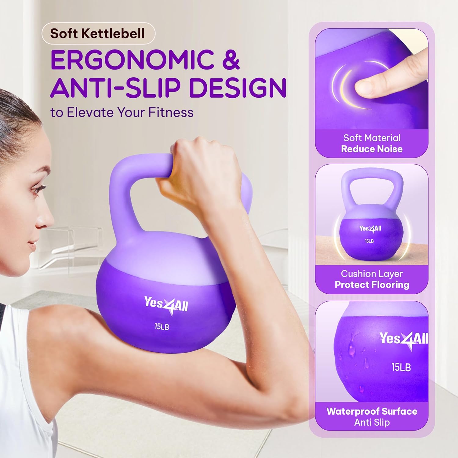 REDUCE NOISES: The soft kettlebell features soft PVC material & shock-absorbing bottom, reducing loud noises & lessen drop impact; This exercise weights for women is gentle to the touch, its soft curves offer peace of mind during exercising